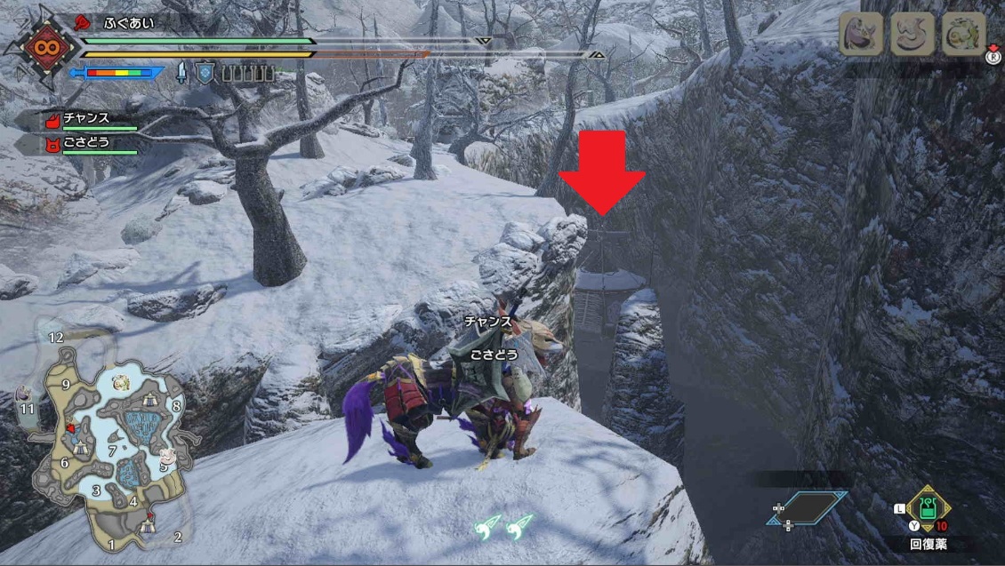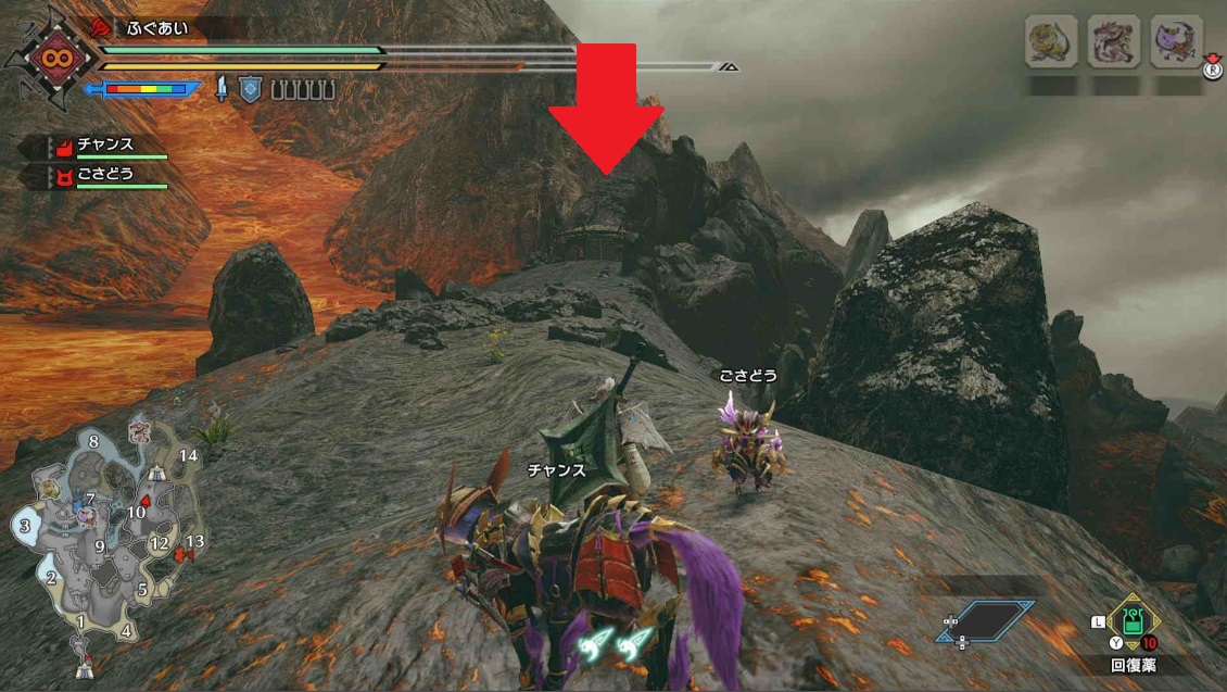 →イズチは青丸の位置にいます。倒しても4分くらいで再度湧きます。