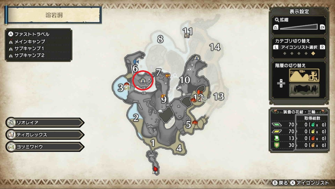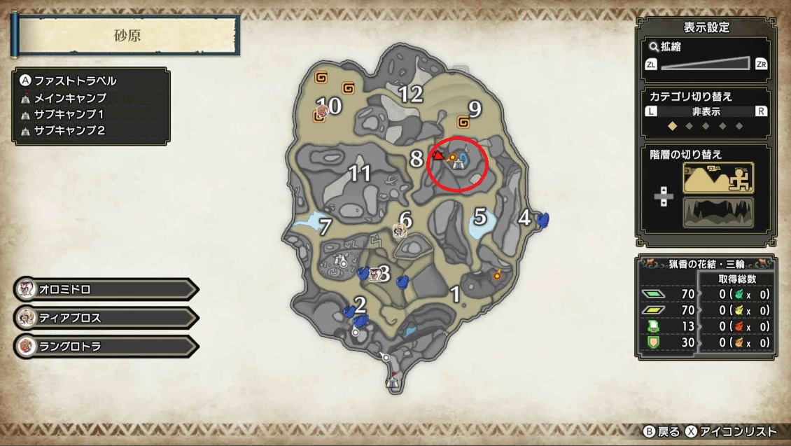 サブキャンプの位置と解放の仕方を解説します。討伐対象のモンスターの位置も併せて掲載しています。