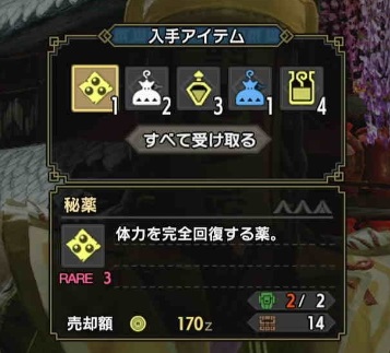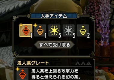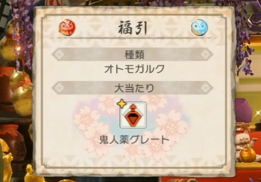 「当たり」では鬼人薬グレートなどが手に入りました。