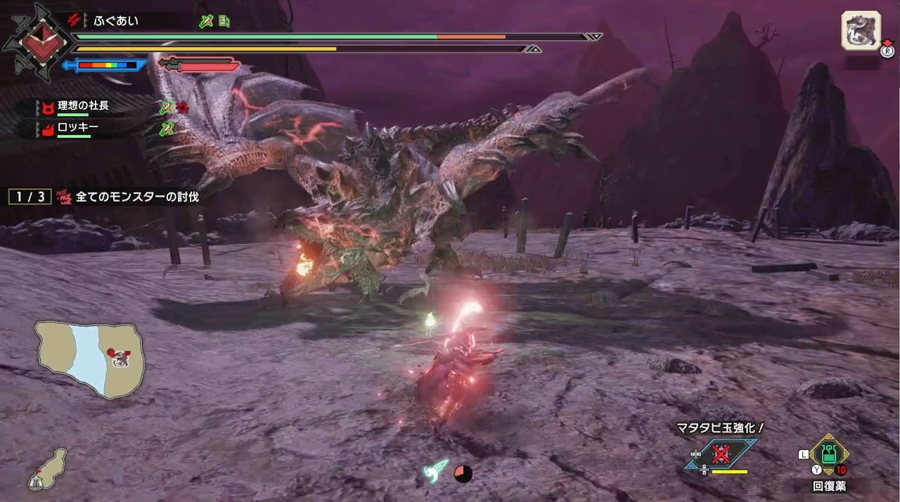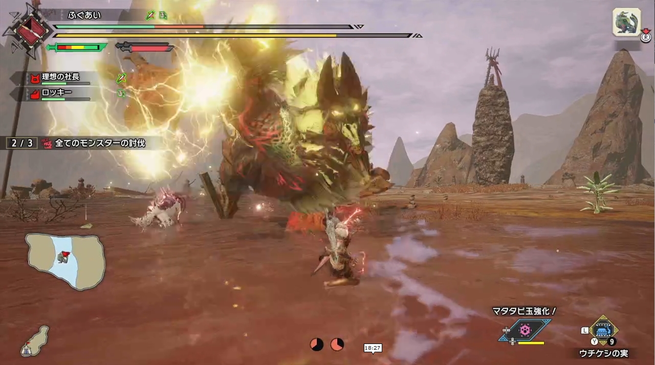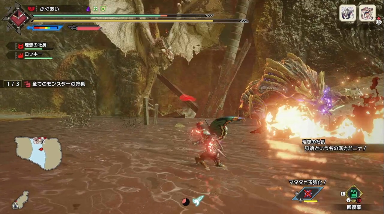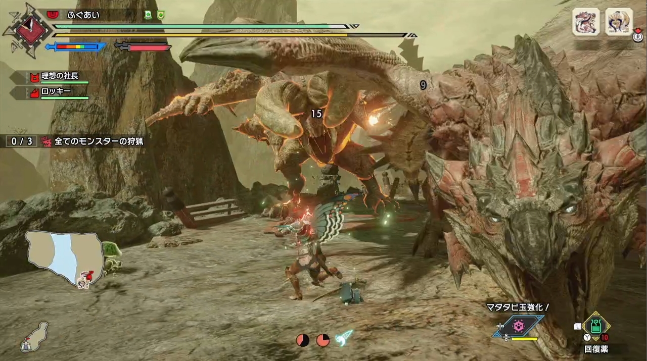 ヌシ・タマミツネ、ヌシ・リオレオス、ヌシ・ジンオウガの3連戦です。今回は1体ずつ戦うことができます。