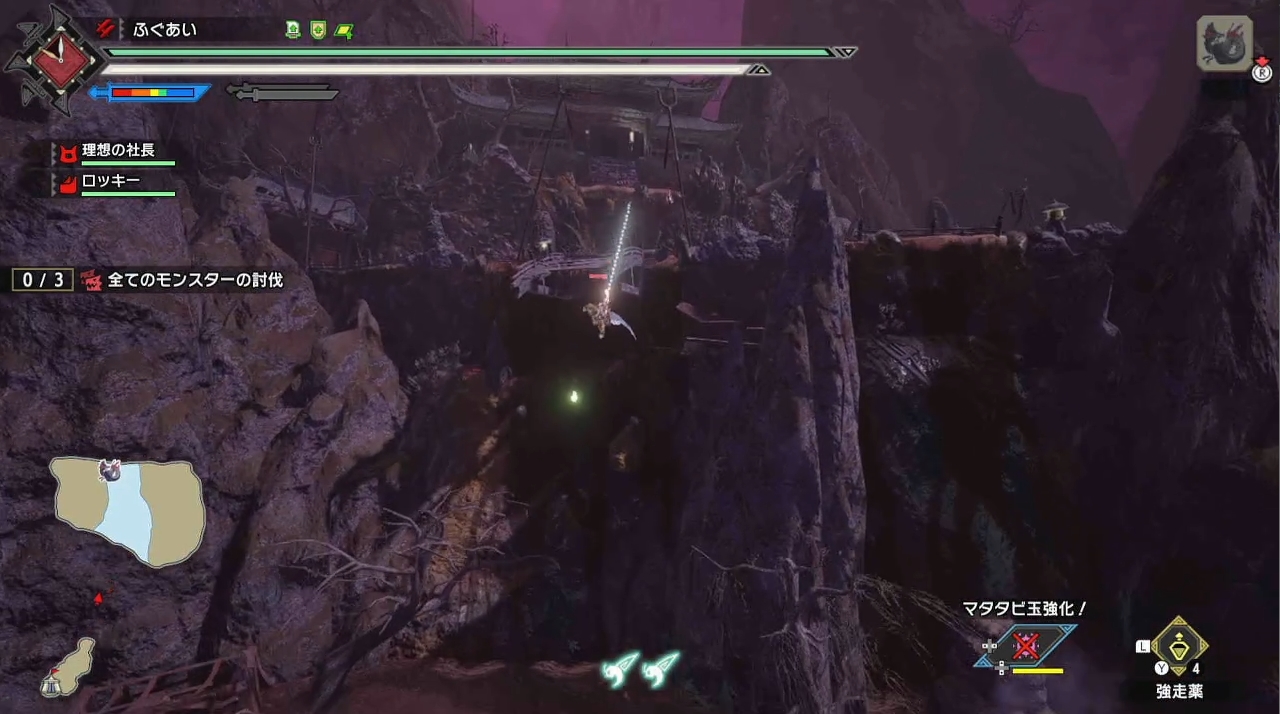 とりあえずクリアだけすっかなと思ってマルチでやる……………はずだったが参加要請で受けてなかったらしく、いつまでも経っても誰も来ないからサーバーが負荷かかりすぎなのかな?と思ってたらオトモが2体いる事に気づいたのはミツネやってる途中でした(´・ω・`)