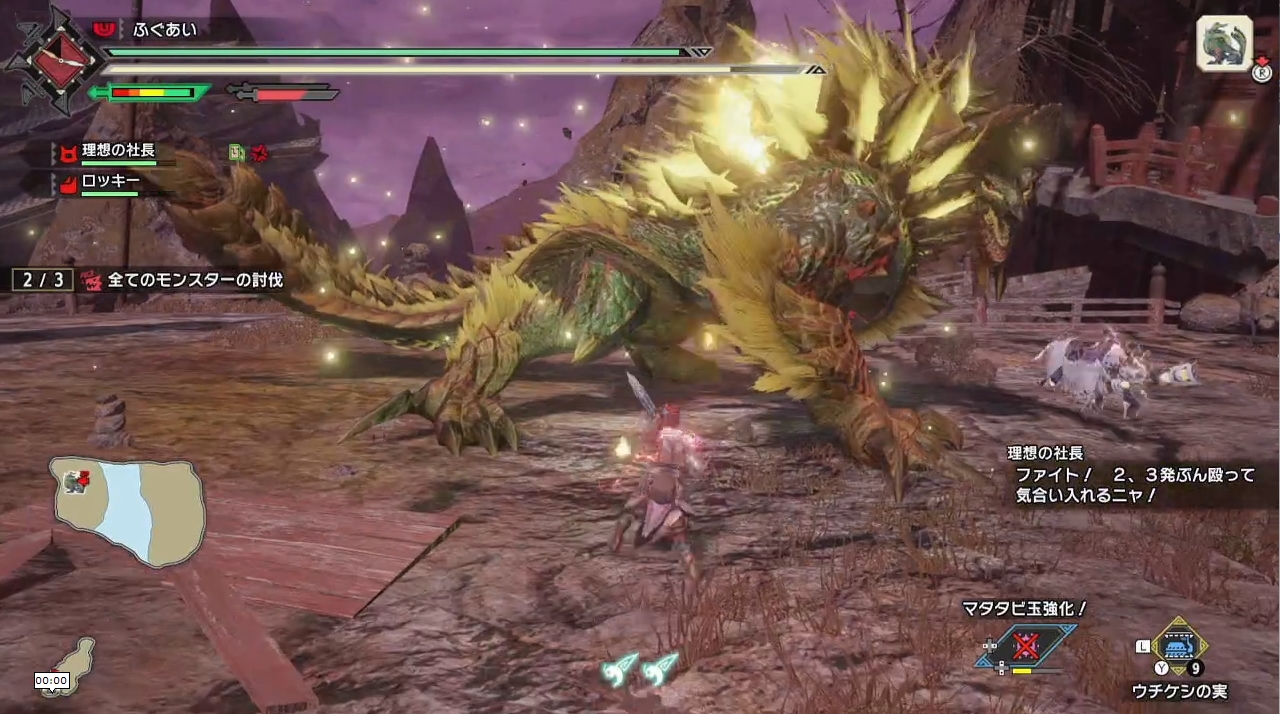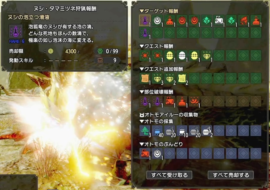 加えてエリアが一つでどこにも行かないので、エリア移動のダルさが一切無いので楽々で一気にヌシ素材が3種類集まるよってだけのクエストって位置付けかもしれない。
