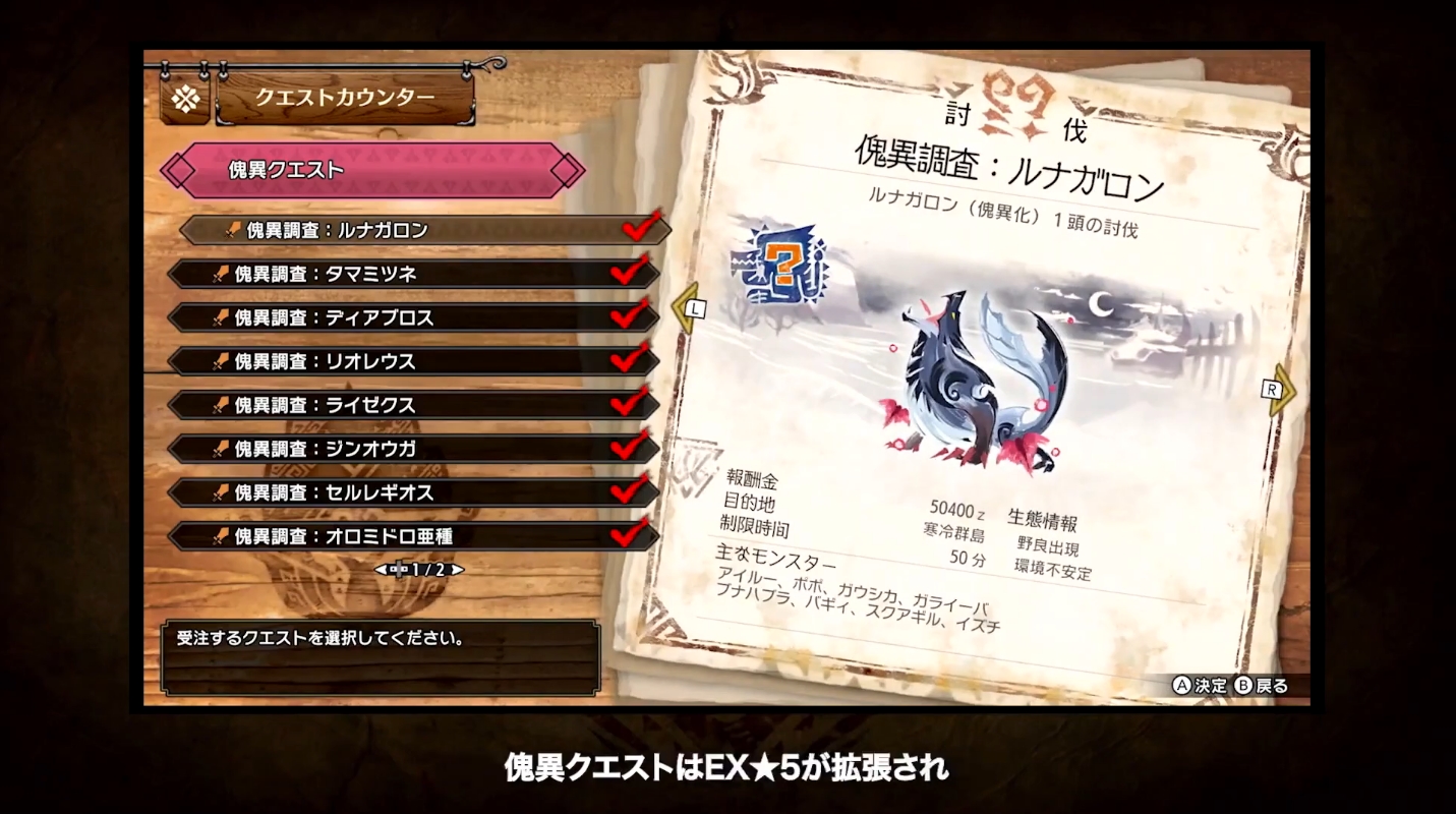 傀異クエストEX5が解放されます。ルナガロンや、