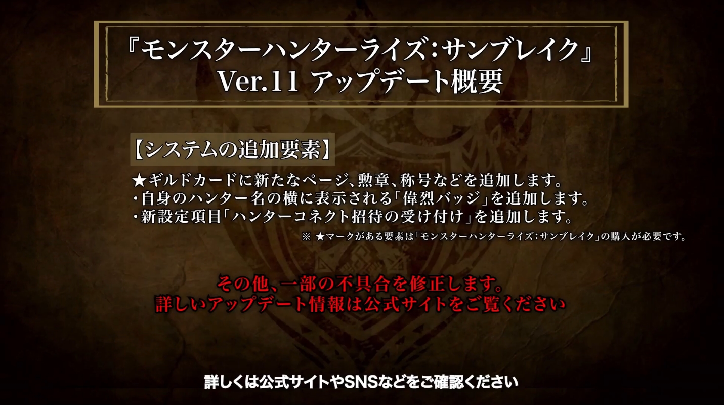 サンブレイクVer.11アップデート概要
