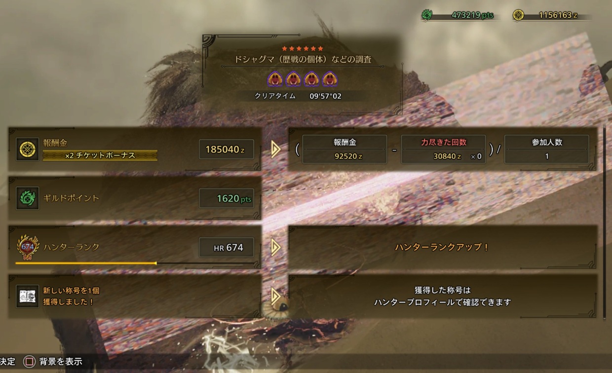 ※歴戦傷破壊で血結晶などが出た気がするけど省略。