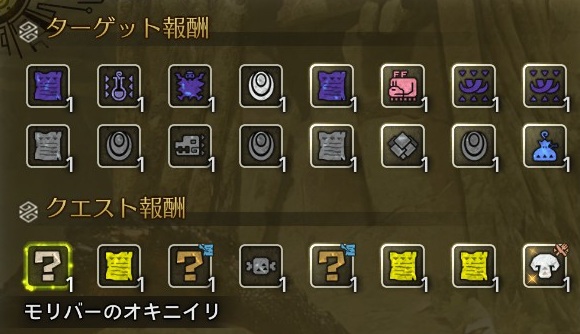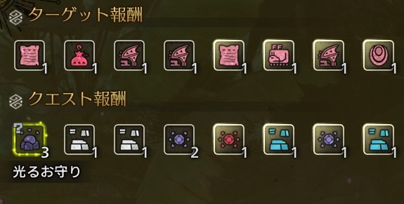 報酬はこんな感じ。拘束手段があればかなり早く狩れるので良いクエストかもしれません。